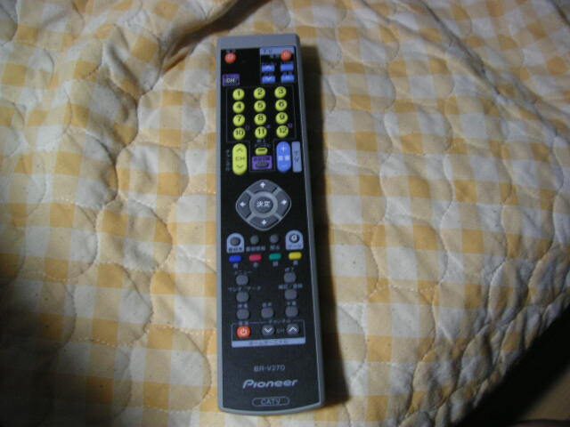 一方、一番下に3つ並んでいるボタンはCATVのホームターミナルを操作するためのボタンです。こちらも、CATVのホームターミナルのメーカをプリセットされていますので、簡単に切り替えることができます。リモコンはBR-V270という名前です。