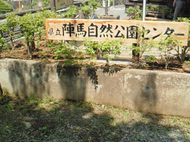 神奈川県側の道は東京都側よりはまだマシなような気がします。下り坂が続きますので、ギアをローにして、慎重に下っていきます。すると、川の上を横断する鯉のぼりが見えてきました。ナビも「目的地に到着しました」と案内してくれたので、この辺が第三の目的地の「県立陣馬自然公園センター」のようです。しかし、駐車場の場所がよく判りません。坂を登っていく道があったのでそっちかな?とも思ったのですが、「バス転回場につき駐車禁止」の文字が見えてきたので、そこが駐車場というわけでもないようです。一旦、通り過ぎてしまったので、もう一度、今度は藤野側から道をあがっていくと、「P」の表示が見えてきました。どうも建物の下の車が数台停められる場所が駐車場だったようです。もっともたくさんの車が停められる場所が準備されているものとばかり思っていました。