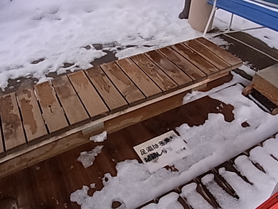 足湯は冬季は閉鎖中でした。お湯がはってあるところは蓋がされていました。