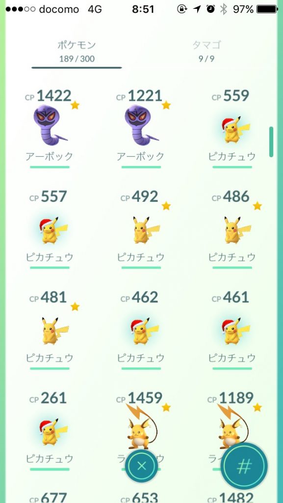 本日、会社に行く途中で何匹かのピカチュウを獲りました。朝のニュースでピカチュウがクリスマスイベントでサンタクロースのコスチュームを着ているという情報は知っていたのですが、捕まえた時点ではどれも普通のピカチュウです。