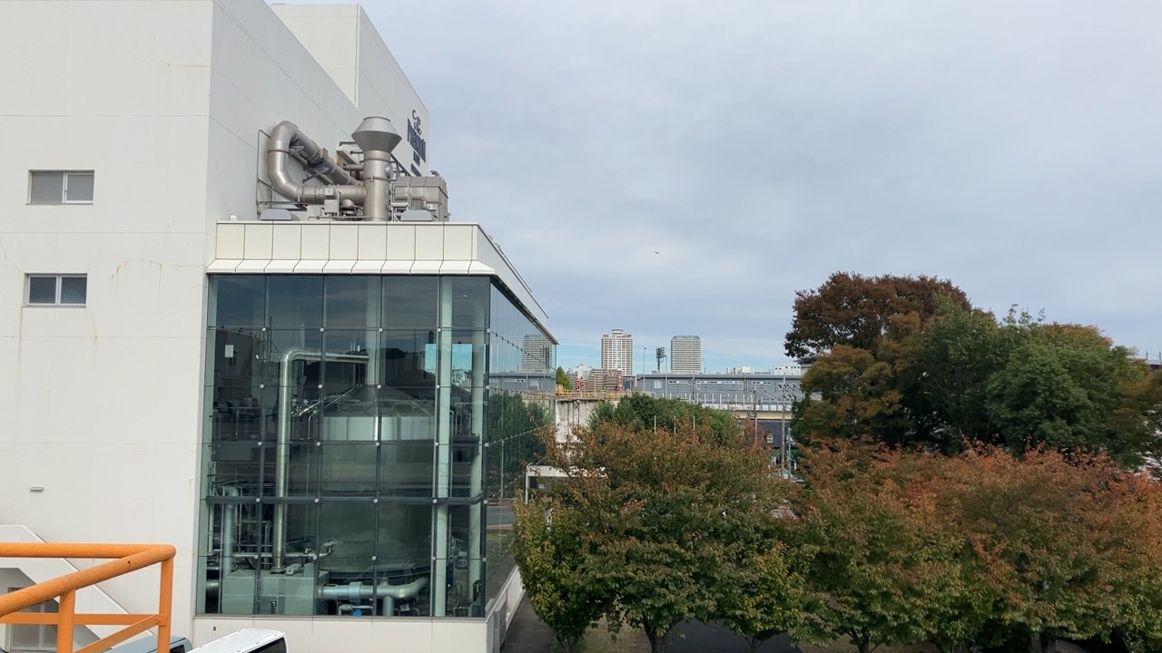 屋上駐車場から1階に階段で下りるときに、隣のビール工場がよく見えました。