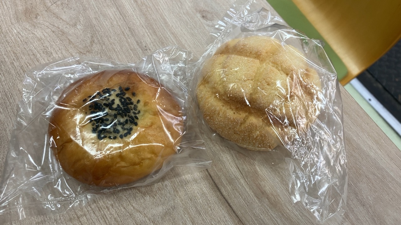 お蕎麦だけでは少し足らなかったので、並びにあった手作りパンの店でメロンパンとアンパンを購入しました。